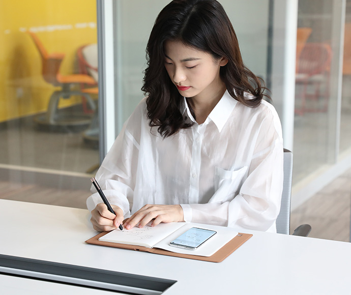 - عملکرد دوگانه و یکپارچه: این دفتر یادداشت مانند یک دفتر معمولی به نظر میرسد و عمل میکند، اما به آسانی از طریق بلوتوث یا کابل (که همراه دستگاه است) به تلفن یا کامپیوتر متصل میشود. این سادگی و انتقال بیدردسر یادداشتها، ویژگی بسیار محبوبی است.